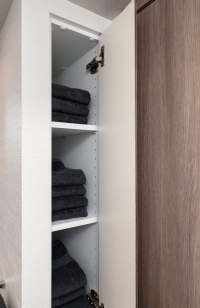 タオルや肌着などをすっきりと収納。脱衣時や入浴後にも、必要なものをすぐに取り出せる便利なスペースです。