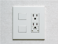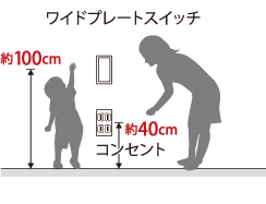 スイッチはお子様でも手が届きやすい高さに、コンセントはあまり腰をかがめずに抜き差しできる高さに設けました。
