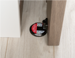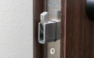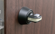 レバーハンドルが壁に干渉しないように保護したり、室内のドアが強風で勢いよく閉まらないようにするために、ロック(固定)機能付きのドアキャッチャーを採用しています。