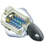 複製が困難で耐ピッキング性の高いシリンダーキー。約5兆5,000億通りの錠違いが安心と安全をお届けいたします。