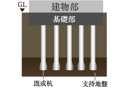 「サンクレイドル東大宮Ⅳ」では、地下約33mの支持地盤に26本の既成杭を打ち込み建物を安定させています。(本体建物のみ)