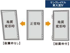 万が一の地震で枠が変形しても扉の開閉機能が損なわれづらい耐震枠を標準仕様としています。