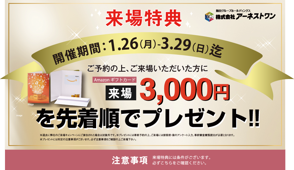 ※他ご来場キャンペーンとの併用はできません。また、ご来場キャンペーンを過去に利用された方は対象外となります。